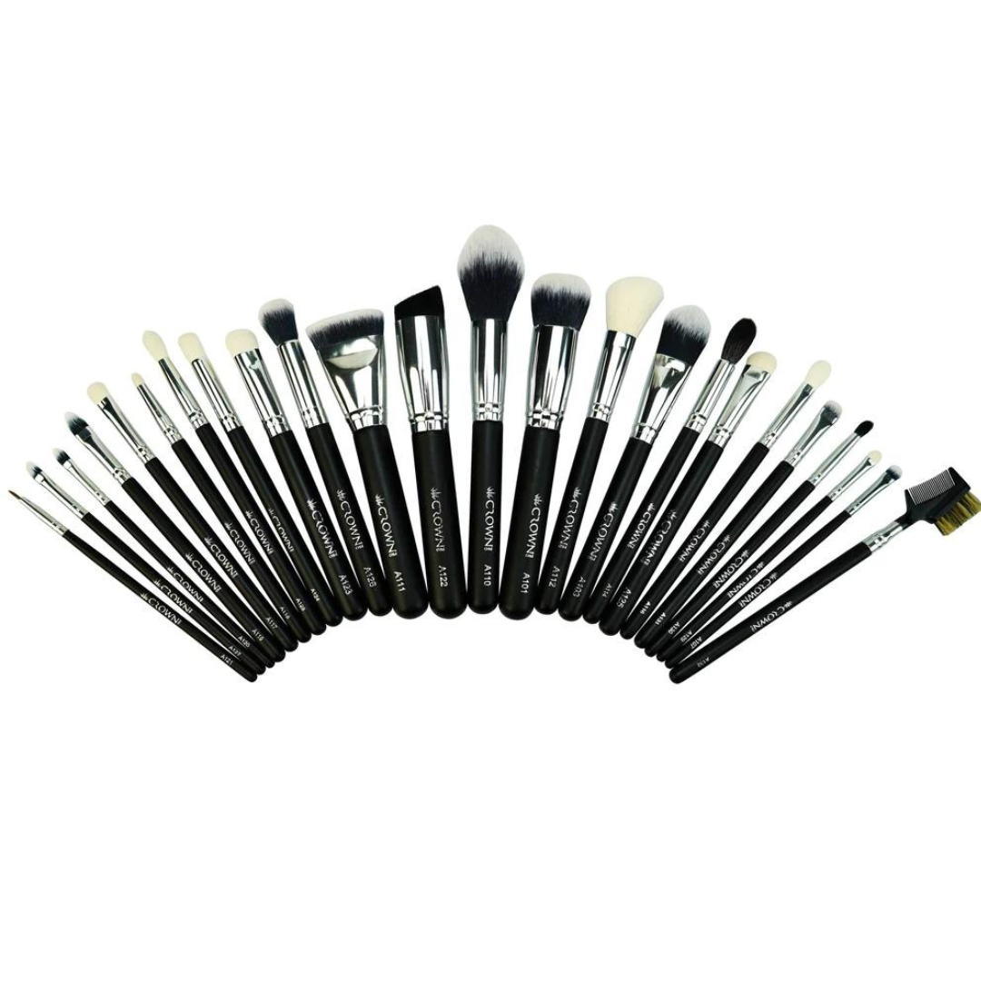 Complete 24 piece Crown Pro makeup Brush set with 27-slot Brush Book Case.