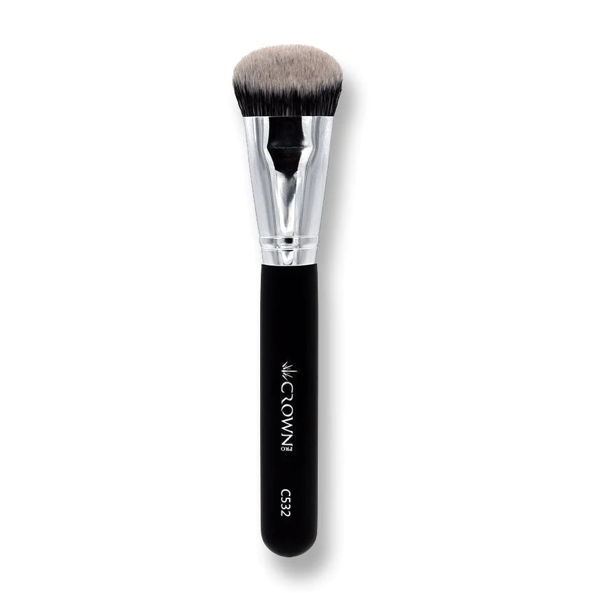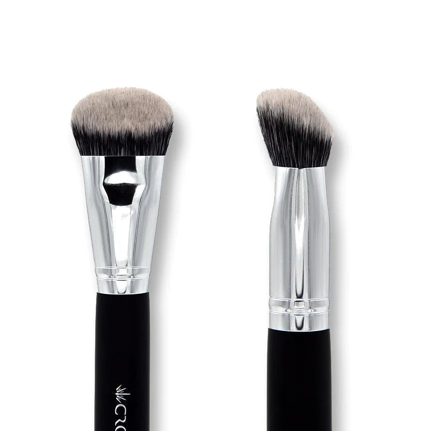 The Pro Angled Contour's compact head allows for a very controlled application of foundation, cream, and contour products. Thanks to the super soft, dense synthetic bristles, this brush can be used with both powder and cream products, and provides medium to full coverage for a more dramatic finish. Use in the hollows of the cheeks and around the periphery of the face for a more natural and seamlessly blended contour effect.