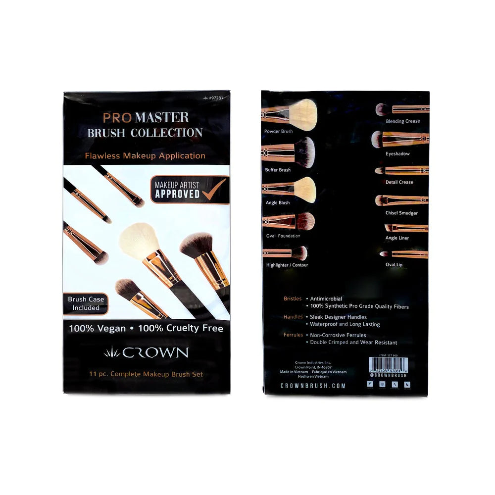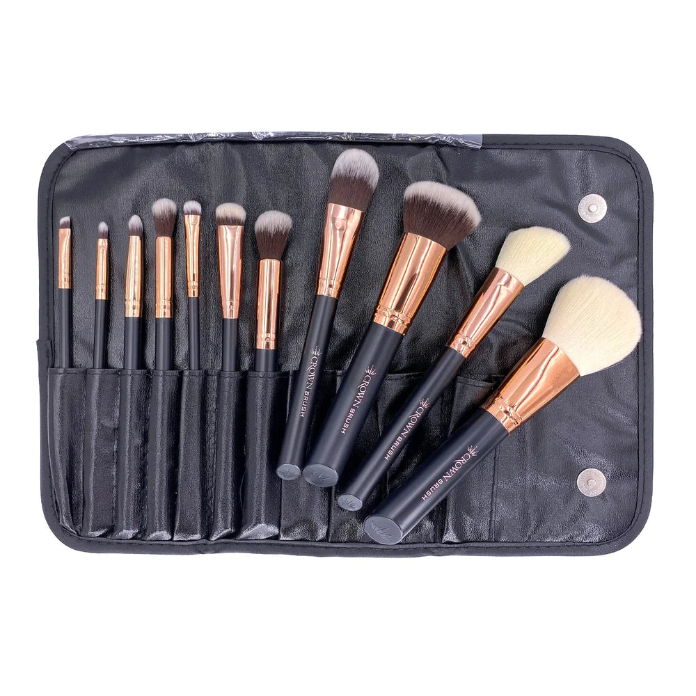 Set includes: Powder Brush, Buffer Brush, Angle brush, Oval Foundation Brush, Highlighter / Contour Brush, Blending Crease Brush, Eyeshadow Brush, Detail Crease Brush, Chisel Smudger Brush, Angle Liner Brush, Oval Lip Brush, Brush Case