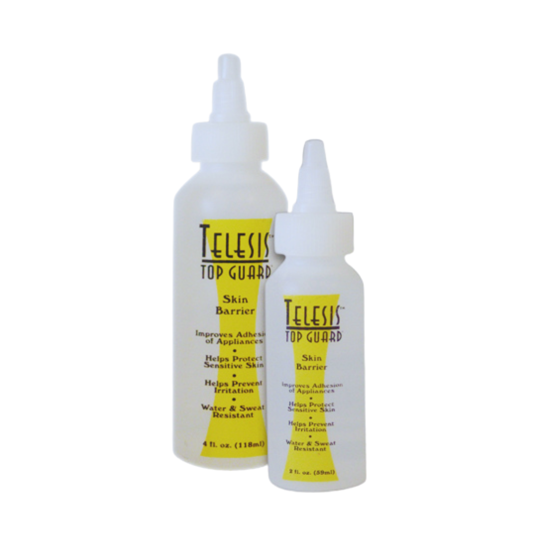 TOP GUARD - Methacrylate based, non-oily skin prep and surface primer. A superior water and perspiration resistant formula that reduces skin irritation and increases the adhesion of prosthetic devices. Available in 2 oz., 4 oz.,