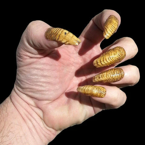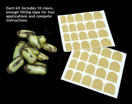 Creepy Claws are Film-Quality prosthetic costume claws, designed by one of the leading sculptors in the film industry exclusively for Dental Distortions, Inc. Each set is hand painted for ultra-high realism. These semi-ridged claws fit over your fingernails just like regular acrylic nails and are held in place with special cosmetic tape that you custom fit to your nails