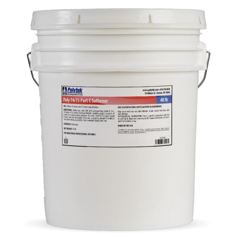 Poly 74 Series Part C is an additive that can be added to PT Flex Rubbers, 74 Series, and 75 Series polyurethane rubbers to reduce the Shore A hardness and to lower mixed viscosity.