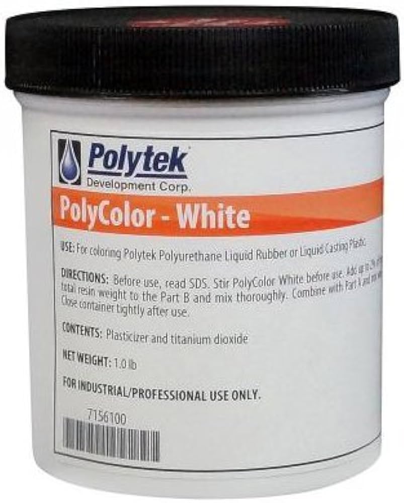 Add up to 0.5% PolyColor Dye to the total mixed weight of the liquid rubber or plastic being used (exception: up to 2% of PolyColor White and PolyColor Fleshtone can be added to polyurethane rubbers and resins). Stir PolyColor White & PolyColor Fleshtone before use.