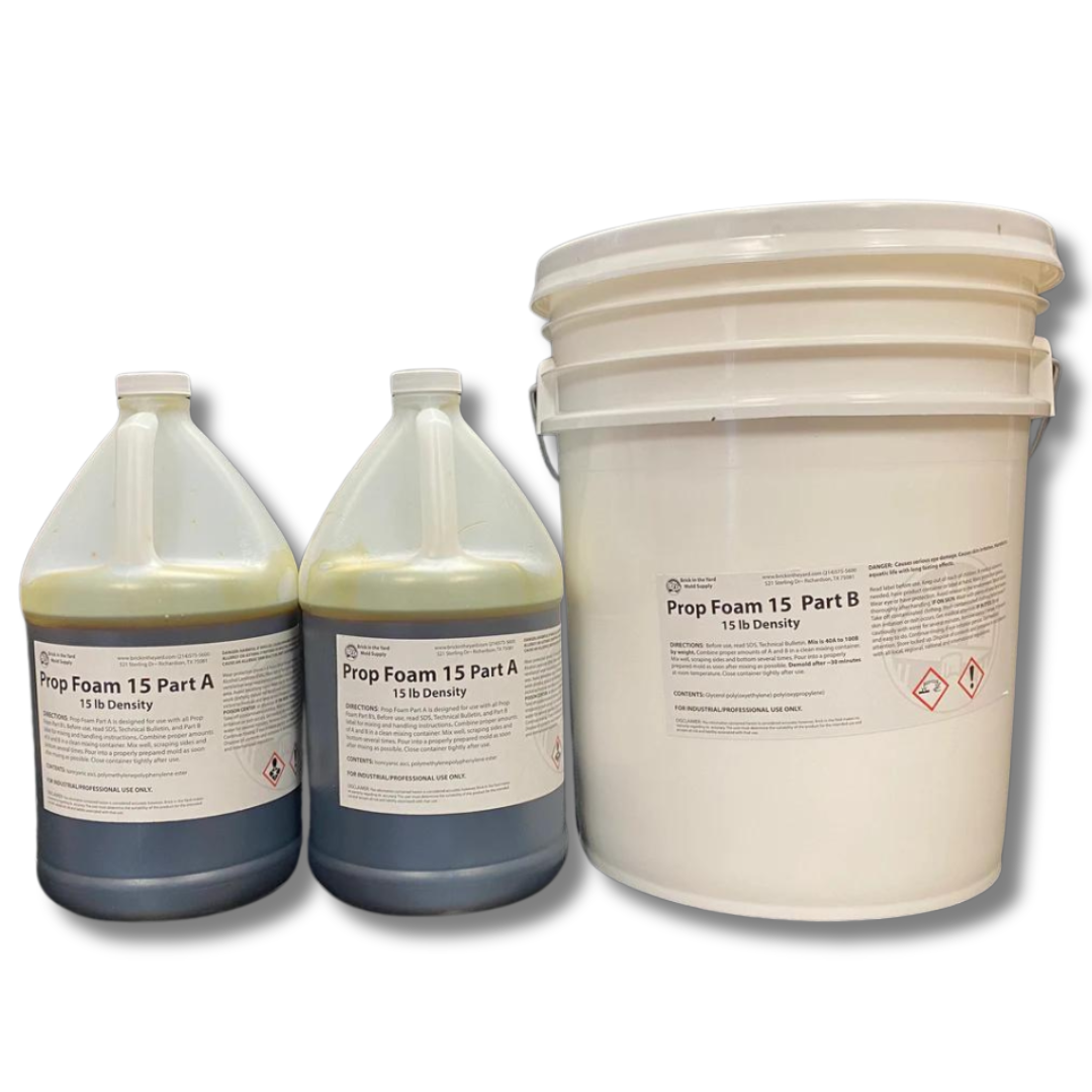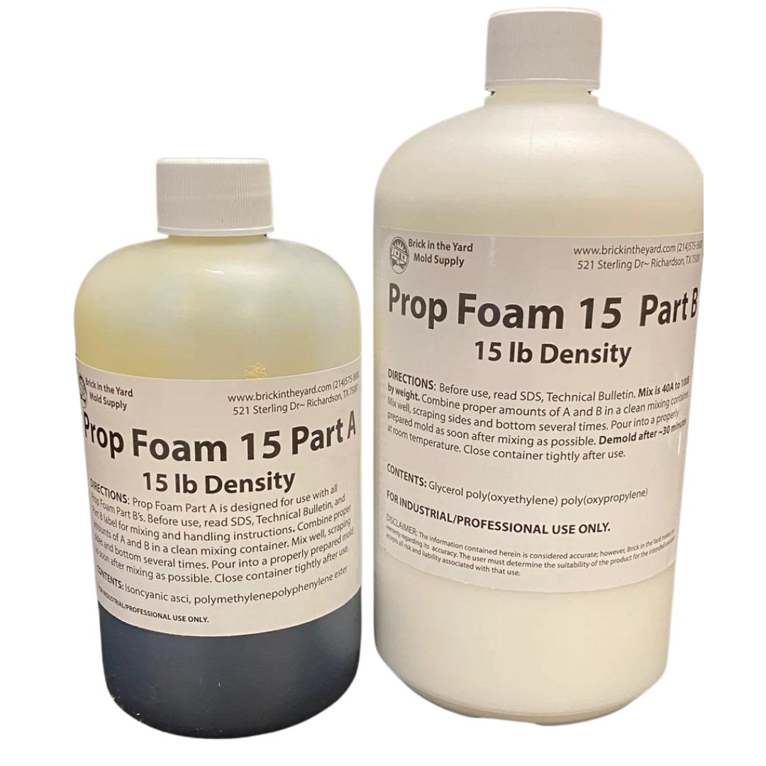 Prop Foam 15 is a 40A:100B mix (by weight) polyurethane self-skinning flexible foam that has a free-rise density of ~15 lb per cubic foot. Prop Foam 15 flexible foam is excellent for casting weapon props as well as functional pieces and padding.