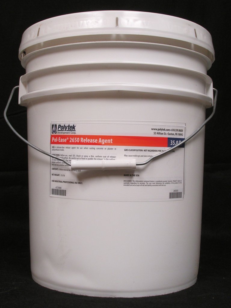 Pol-Ease 2650 is a silicone-free release agent that can be brushed or sprayed into polyurethane rubber molds before casting plaster or concrete. Apply as lightly as possible so as not to puddle release. Does not need to dry before casting plaster or concrete.