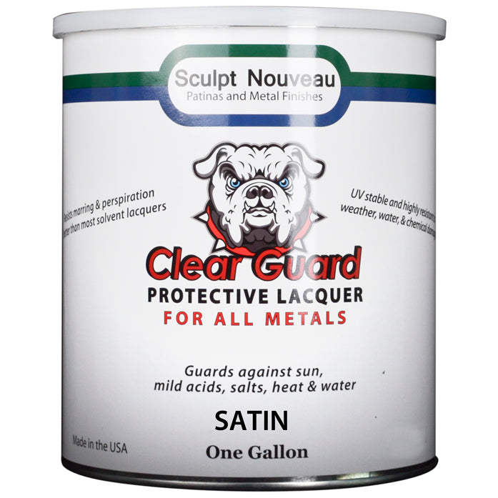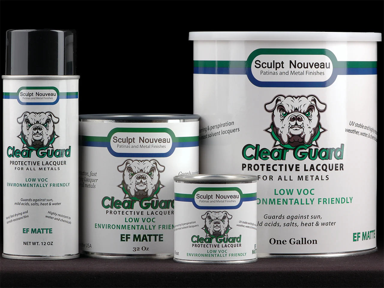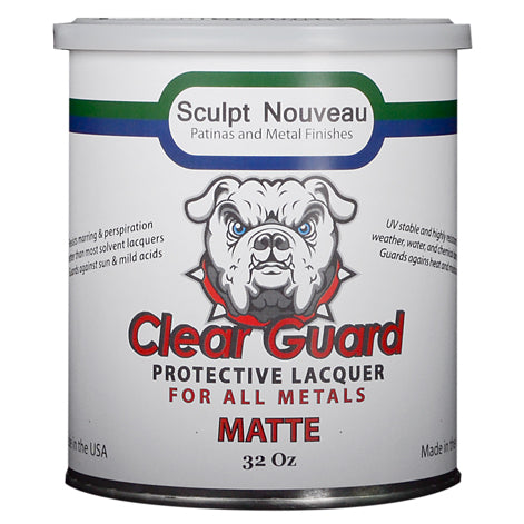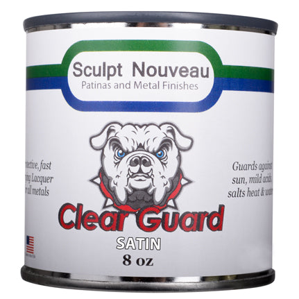 Clear Guard is a crystal clear, durable, air drying lacquer that results in a hard, fast drying, and tarnish resistant film. It has excellent adhesion to bronze, brass, copper, and other metals as well as to patinas and rusted metal. Clear Guard is suitable for use with all types of application equipment. Once thinned, it may be used with sprayers.