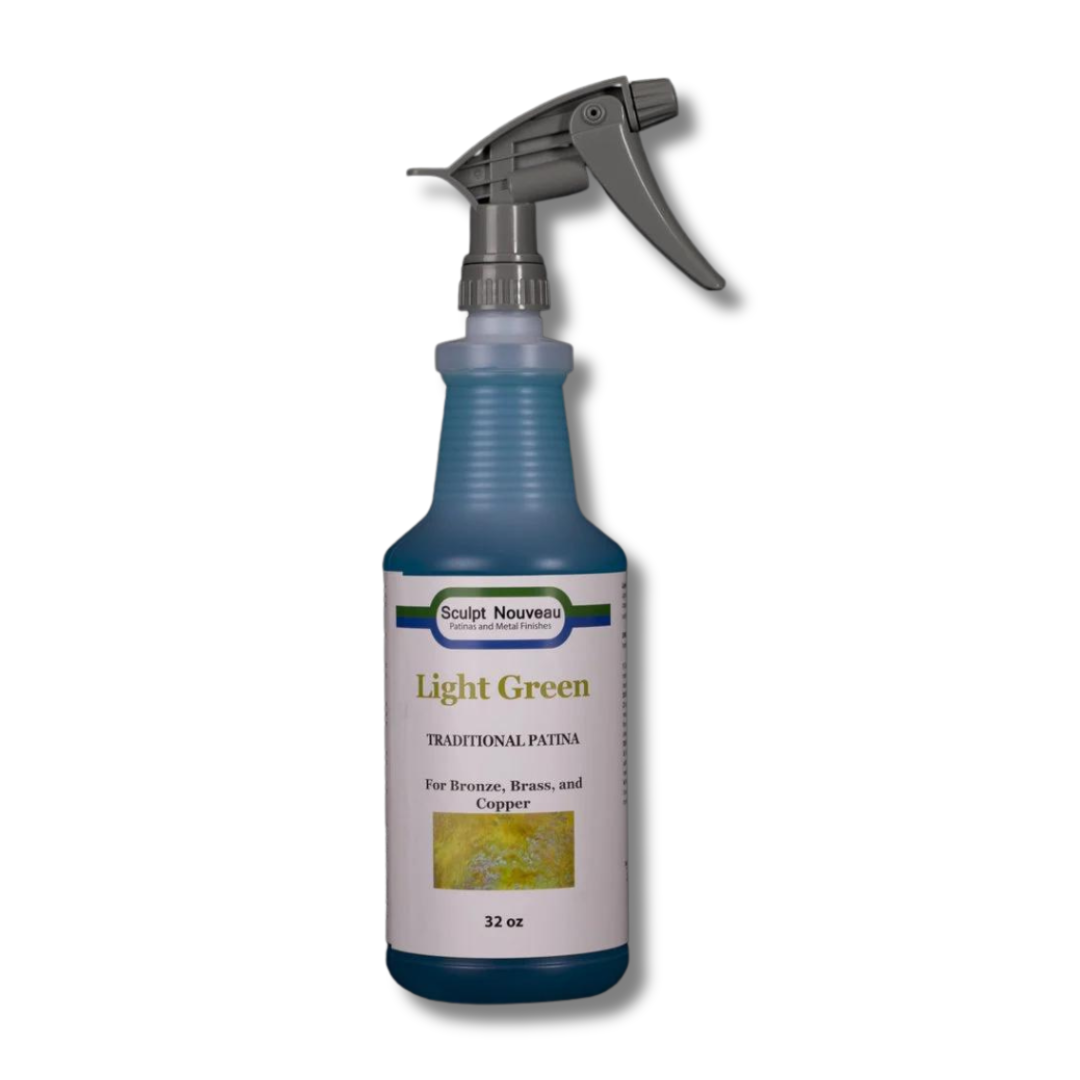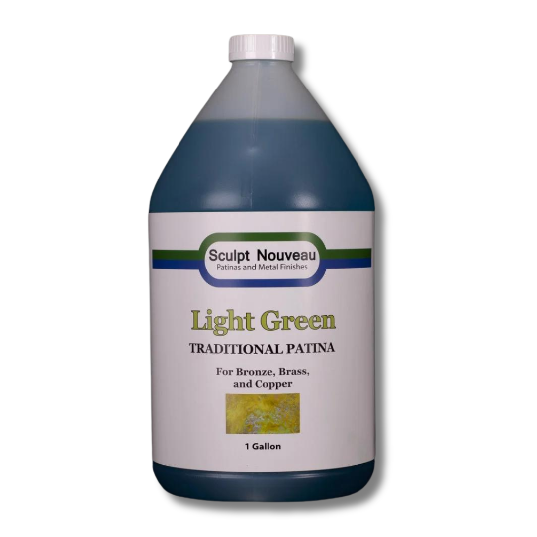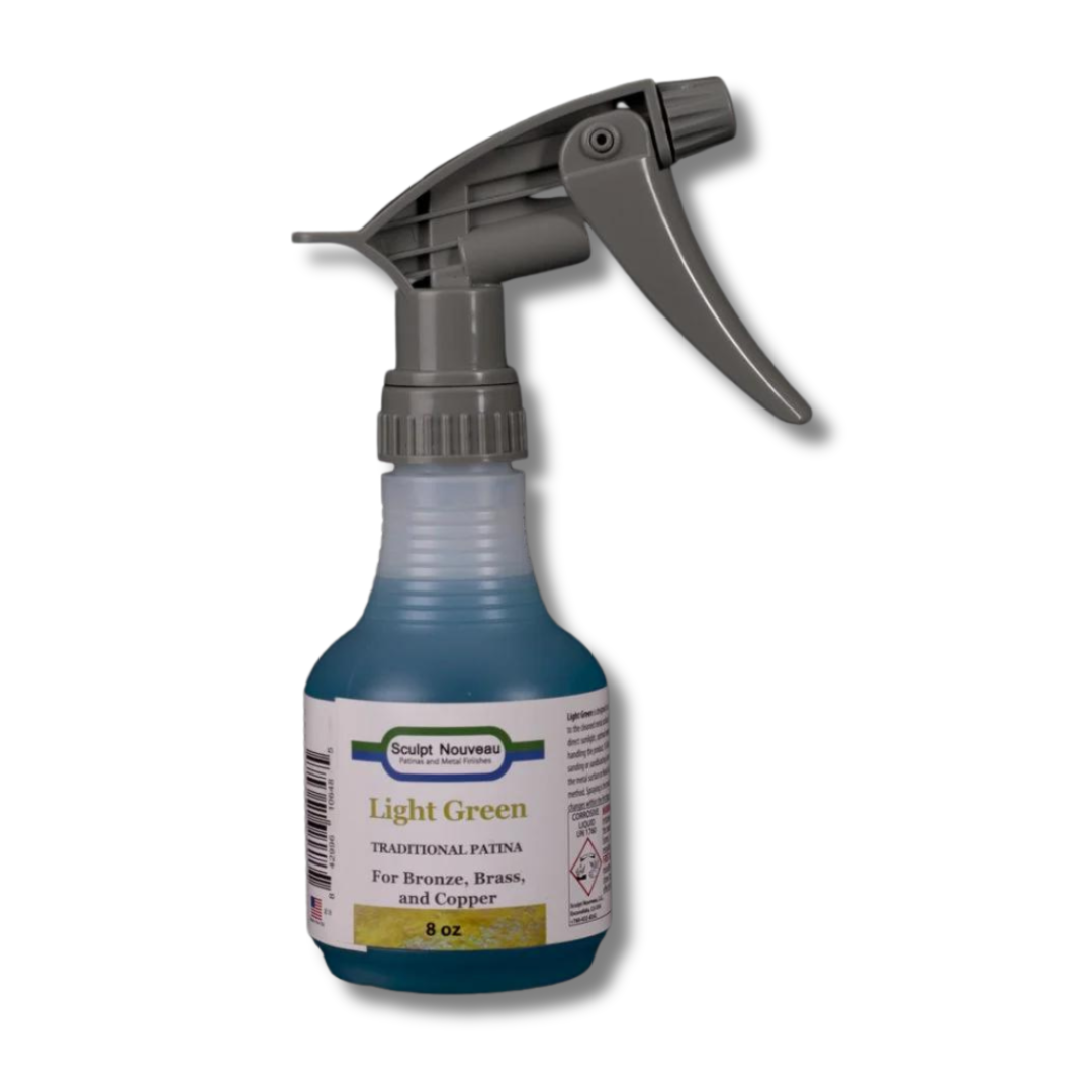 Light Green Patina is a cold patina for bronze, brass, and copper. Apply to a clean, cold (65°-70°F) metal. It will take 2-12 hours to completely react with the metal.
