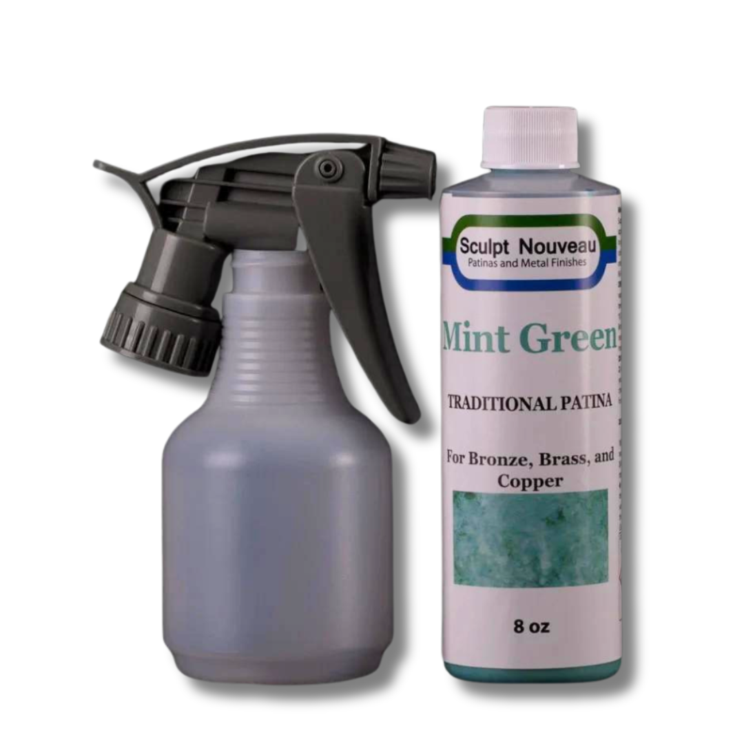 Mint Green is a patina for bronze, brass, and copper that may be applied hot or cold. This patina will create a beautiful green while in the full sun and is recommended when working outdoors on copper roofs and gutters.