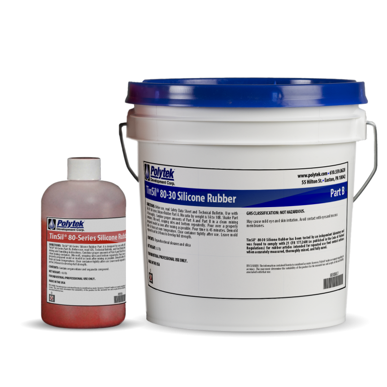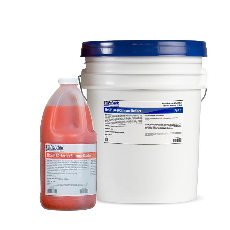TinSil 80-30 is the first in a new series of tin-cured silicone mold rubbers from Polytek that are designed to offer reduced shrinkage upon cure and during casting, longer storage/library life once cured and longer use-able mold life.